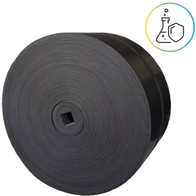 A chemical resistant conveyor belt is designed to handle materials exposed to acids, alkalis, oils, or other harsh chemicals. Made from special rubber compounds, it prevents corrosion, degradation, and damage, ensuring durability, safety, and reliable performance in chemical-processing industries.