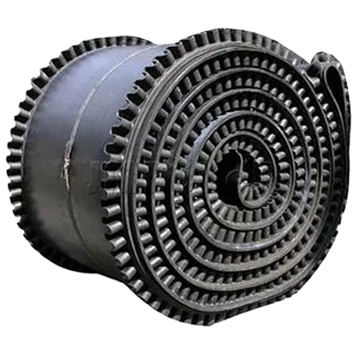 This belt is designed for transporting materials on steep inclines or vertical lifts. With raised sidewalls and cleats, it prevents spillage, ensuring safe, efficient handling of bulk materials such as sand, gravel, grain, or other loose products.
